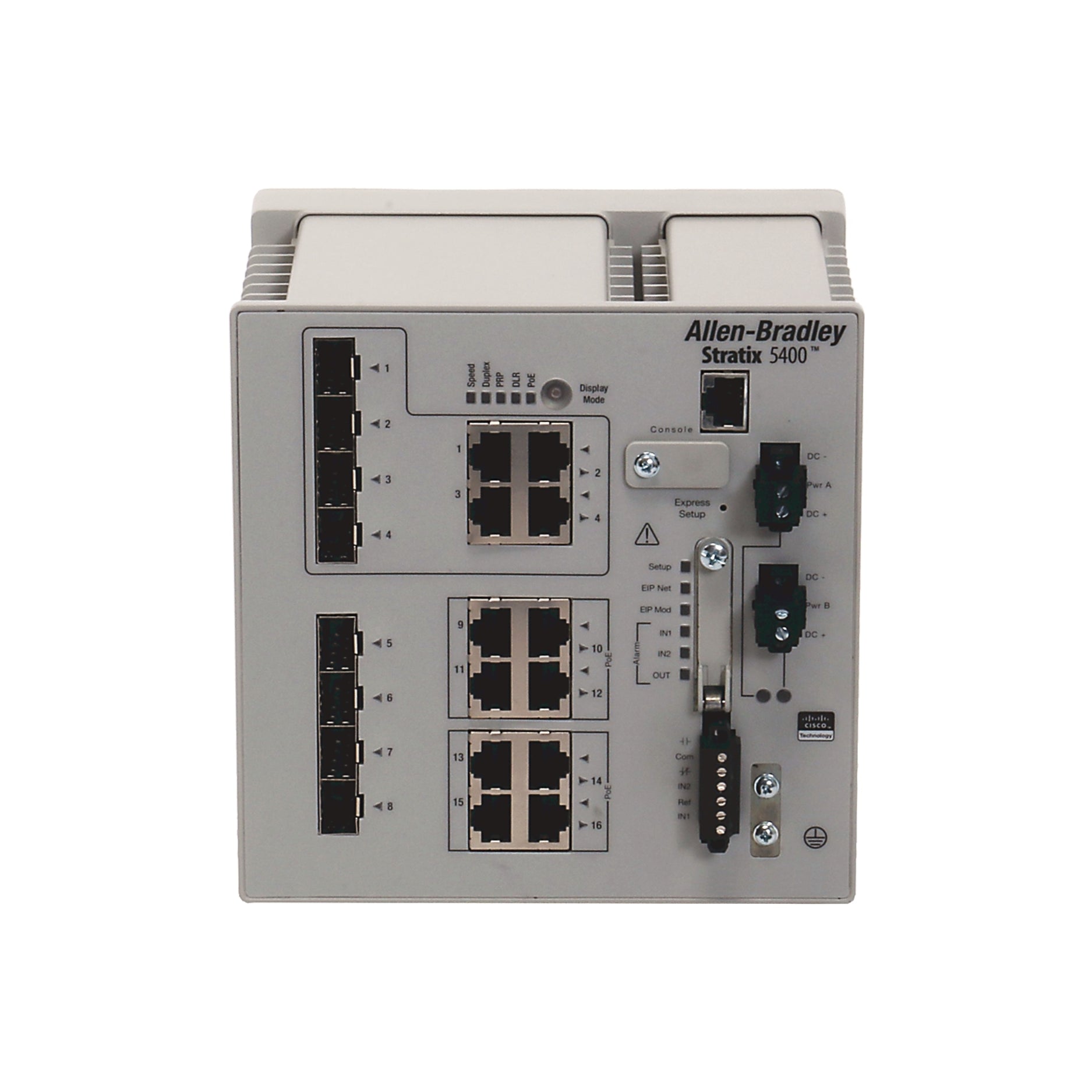 O Allen-Bradley 1783-HMS4SG8EG4CGR é um switch Ethernet gerenciável de alto desempenho da série Stratix 5400, projetado para redes industriais que exigem roteamento avançado de Camada 3, Power over Ethernet (PoE) e conectividade por fibra. Ele possui 4 portas combinadas de cobre/SFP, 8 portas RJ45 habilitadas para PoE e 4 slots SFP dedicados, oferecendo flexibilidade incomparável para arquiteturas de rede escaláveis em ambientes exigentes.